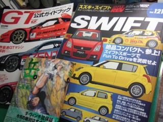 REV SPEEDのハイパーレブ スイフト、07年SuperGT公式ガイドブック、それと岳の4巻。次帰った時に持って帰るけど、早く読みたかったら自己確保する事。>親