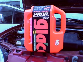 待望のガラコスーパージャンボ2800をガブガブ飲ませたった。ウォッシャー液容量が2リットルだから、あと0.8リットルほど残ってるな。