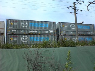 マツダの30フィートコンテナ(U50A)。見た感じ8つくらいあった。日本通運のロゴもあったから、日通の私有コンテナでマツダが借り上げたのかな?(てか、登録番号が「U50A-01」とか、ものすごい若番なんだけど)