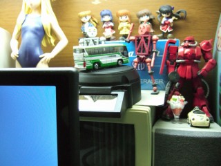 まぁ、回転させたから動と言うことはあってもどうと言うことはないんだけど、まぁ、なんか目の前にこういうのがひとつあっても面白いかなぁと。広島のときは、ひだまりの民を置いてたりしたしな。今も、机の棚に置いてあるけど。