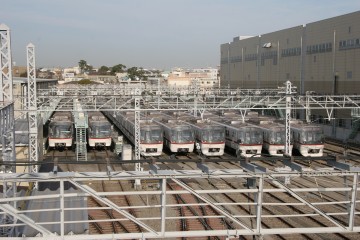 ちなみに、今も現役の馬込車両検修場の地下からの出口はこんな感じ。地下からそのまま高架の引上線に上がって、折り返して入場するから踏切は無し。