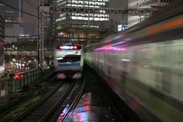 んで、合流前。あんまり夜は出歩かない人間なので、カメラ持って夜に外出てるなんて久しぶりだなぁと思ったので、有楽町駅でちょいと撮影してみた。