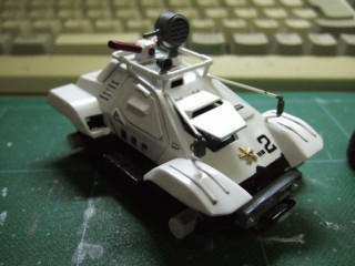 パトレイバーの98式特型指揮車。マンガ版を親しんだ後藤には、ワンボックスタイプの97式レイバー指揮車のほうが好きなんですが。どっか、キットを出さんかね。