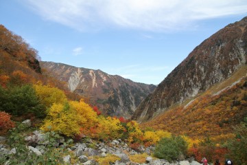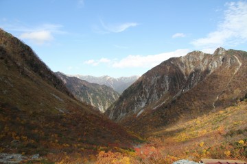 涸沢って穂高岳登山の前線基地みたいな場所で、上高地のまるっきり逆側なんだけど、この紅葉を目的にここを訪れる人も多くて(て、自分らがそうだったし)確かにこれは見事だと思う。写真にとっても、この凄さは伝わらんな。いや、写真の腕のうんぬんかんぬんでわなくてだな。