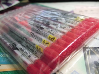 書き味が軽いけどインクはしっかり出るし、ペン先も0.38mmでちょうどいいし、コレがいいんだ。