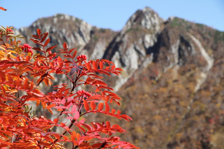 真っ赤なナナカマドと屏風の耳。ナナカマドはどこも真っ赤になってたもんなぁ。