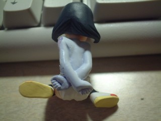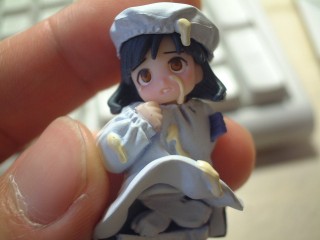 とかなんとかいいつつも、帽子だけ被らせてみたりする。なんだかなぁ。よく考えたら、この状態にすると、フィギュア本体に余計な穴が開いてないんだよね。ベースに固定するときは、割烹着の方に穴が開いてるわけだし。